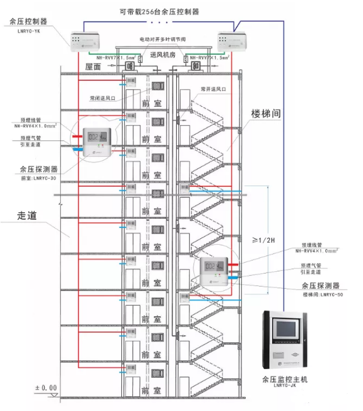 目的:是保持樓梯間和前室的余壓值維持在國家標(biāo)準(zhǔn)范圍,阻擋有害煙氣進(jìn)入的同時(shí),確保防火門的正常開啟,保證生命通道的暢通。