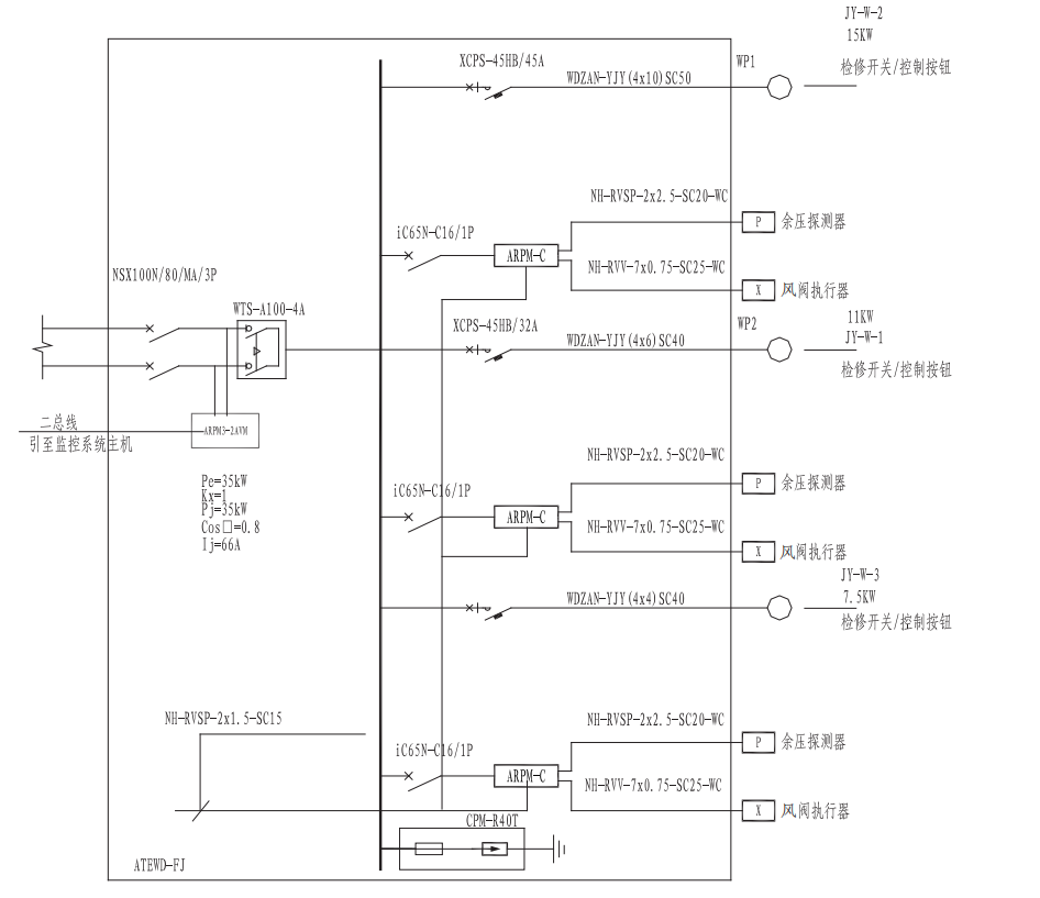 ③余壓控制器與余壓探測器之間為二總線通訊,通訊間隔500m,線型NH-RVSP-2*2.5mm2;