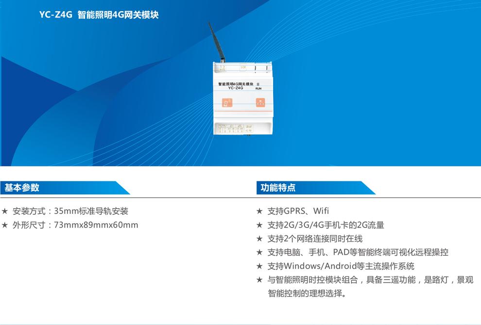 > YC-Z4G 智能照明4G網(wǎng)關(guān)模塊