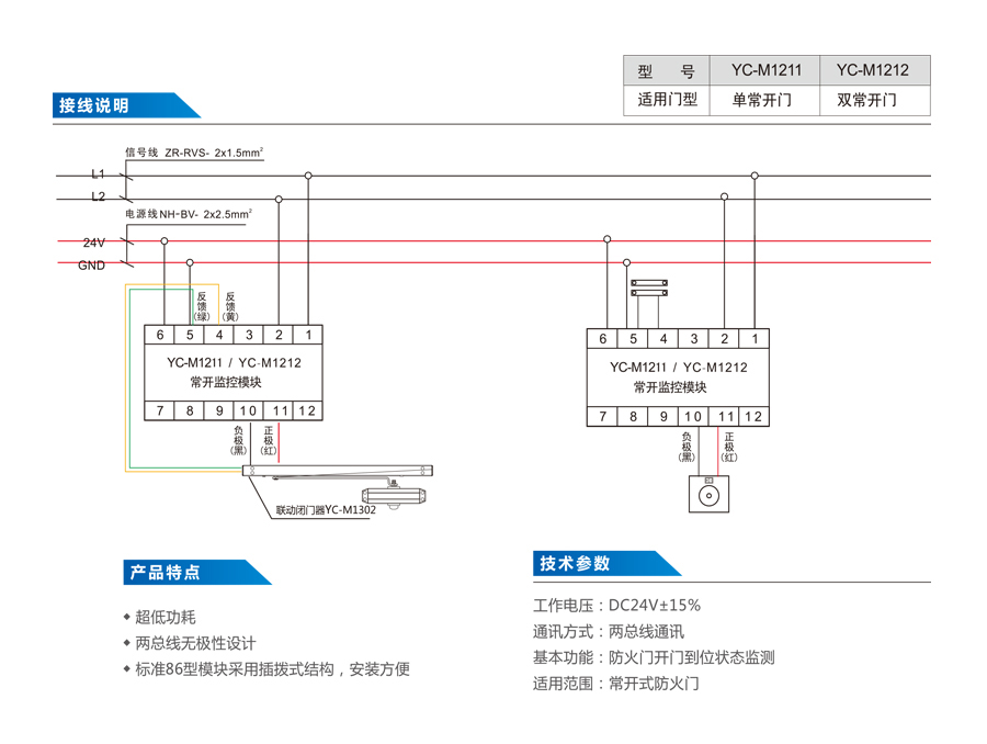 超低功耗; 兩總線無極性設計; 標準86型模塊采用插拔式結構、安裝方便。